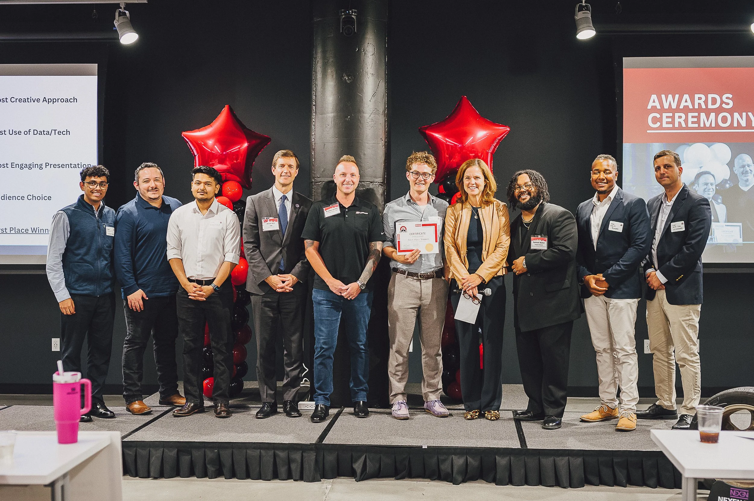On Demo Day, Flywheel, the City of Cincinnati and Tire Discounters welcomed nearly 70 community members, city leaders and partners to hear the final pitches from six finalists in the Pave the Way Innovation Lab at 1819 Innovation Hub. Nate Weyand-Geise earned top honors for a standout concept and creative framing of a proactive and engaging approach to pothole management.